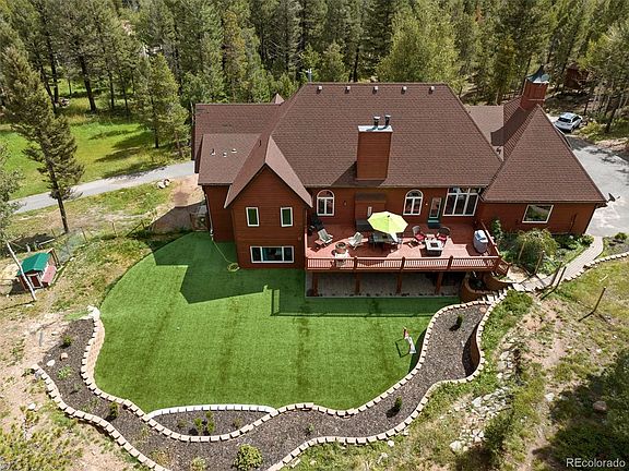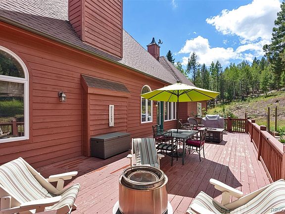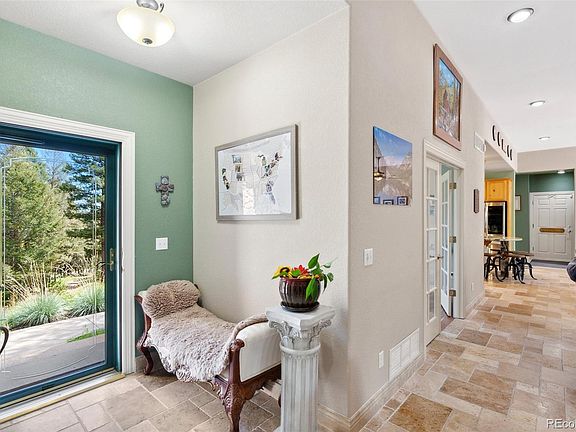 Embrace mtn living at its finest with this captivating 4-bed, 4-bath retreat spanning 4,304 square feet on Conifer Mountain. Nestled into over 8 private acres, this home seamlessly combines timeless architecture with modern updates. As you arrive, the rustic cobblestone gable dormers and elegant bay windows welcome you into a world of charm and comfort. Step inside and experience the perfect fusion of contemporary luxury and rustic allure, showcased by upgraded travertine flooring throughout the main level and primary suite. The primary suite even boasts a romantic Romeo and Juliet balcony. A warm and inviting ambiance is created by the wood-burning fireplaces and intricate stone accents gracing every corner of the home. The large French door office off the main living area provides a serene space for work or creativity. The heart of the home is the open kitchen, complete with a spacious island that beckons for gatherings. New granite countertops, a custom vent hood for the 6-burner Bertazzoni cooktop, and double convection ovens add a touch of culinary delight. Recent upgrades include 3/4 premium hardwoods, plush carpeting, and fixtures that enhance both style and comfort. The lower level surprises with a custom barn door-adorned apartment, with wet bar that can easily be converted back to full kitchen, bathroom, and bedroom—offering multi-generational living or income potential. Outside, revel in the meticulously landscaped yard, with covered patio -a sanctuary for outdoor living. A chicken coop, shed, and playhouse complete the perfect mountain scene. Notably, the property boasts solar panels harnessing renewable energy and a backup generator for added security. The property's appeal is further accentuated by its proximity to Aspen Park amenities, Staunton State Park, biking and hiking trails, premier fishing spots, and ski resorts merely an hour away. Seize the chance to embrace the Colorado lifestyle—contact us today and unlock the doors to your mountain dream.