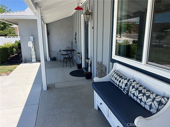 Gorgeous Menifee 55+ home two bedroom two bath 1098 ft. Everything in this house has been redone. It’s got a new roof, new copper plumbing, newer plumbing out to sewer, newer double pane windows, newer paint, newer engineered laminate flooring, newer kitchen cabinets, quartz countertops, and all the appliances stay with home including washer and dryer. Bathrooms have been remodeled Tub and tile in the front bathroom and a walk-in shower in the back primary bathroom and newer carpeting in both bedrooms. Additional two car garage in the back of the property and a golf cart garage, RV parking, electronic gate, Upgraded 200 Amp Plug in gulf cart garage and two car garage , and there’s just so much more This is a definitely a must see. Gorgeous front yard landscaping , A Covered front porch.