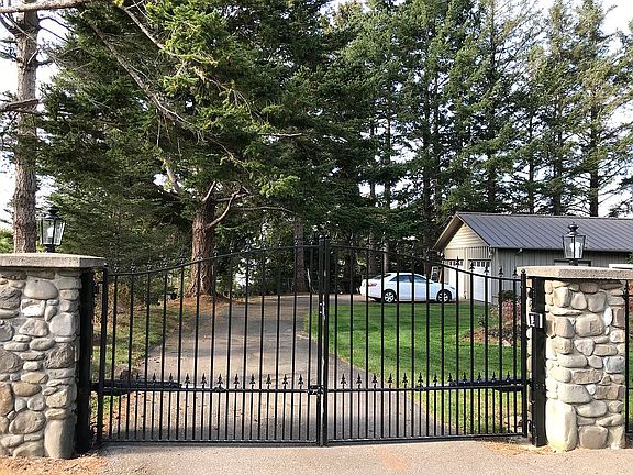 Lovely custom home with 32' X 17' living room featuring vaulted ceilings and full height natural stone fireplace. Five skylights. 40 year warranted steel roof. Underfloor insulation upgraded recently to R-30. Lots of cabinetry and storage throughout. Large master bedroom with deck access, window seat and ensuite bath. Walk-in closet in master, double sinks in both baths. Large attic storage with pull down stairs. Remote controlled gated entry and decorative fencing on street side. Fully fenced with chain link on remaining sides. Home is to be sold furnished, including furniture as shown and all appliances (kitchen equipment and linens included by request). An adjacent carport/storage shed with double gate access could be expanded into a large shop. Lot size is 1.15 acres. There is a recorded view easement to protect view from tree growth on adjacent parcels. An adjacent view lot is also available.