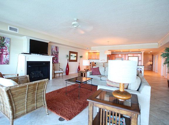 This beautiful condo has beach, bay & Gulf access, floor to ceiling impact resistant glass balcony windows, a huge balcony for a gas grill, a fireplace, granite counters, stainless appliances, 9'ceilings, tiled living areas, jetted master tub, plus magnificent views of Ole River & the Gulf! Pet friendly, air conditioned common areas!