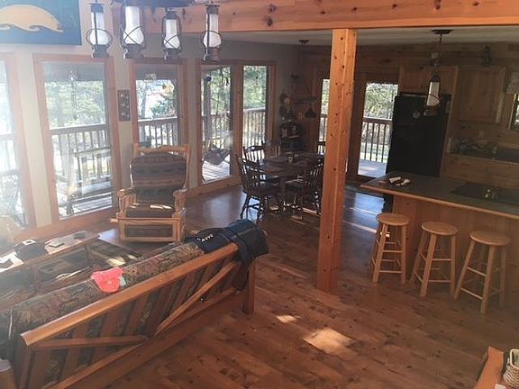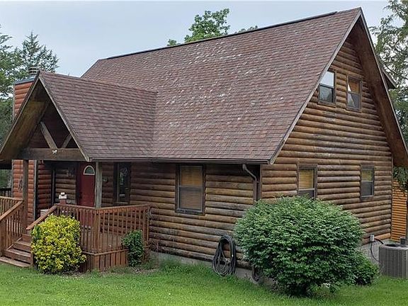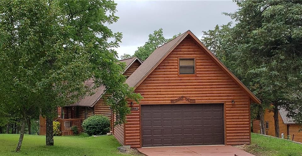 A quiet hide away overlooking Table Rock Lake. Relax on the covered porch or upper deck while watching & hearing the water streaming through the lake. This immaculate log sided rustic home features 2 bdrm 2 bath, over sized loft leading out to the 2nd balcony deck. The over sized detached garage has 3rd bdrm and 3rd bath and additional living room. Home is minutes away from Eureka Springs. 30 ft boat slip w/newer lift available for additional $$. Per seller the developer takes care of road and well. Dues 200.00 for well. House & garage have their own heat pump. 3rd bdrm, 3rd ba and 2nd liv rm located above detached garage. Sq ftg encompasses both living areas. The sq ftg of the house only with 2 bd 2 ba is approx 1591 sq ft. Buyer to verify