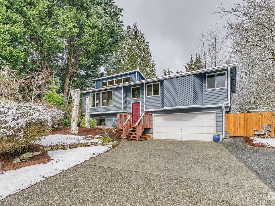 Your search stops here! You will not be disappointed in solid, well loved home w/ numerous updates. Move right in to an open floor plan where kitchen opens to dining rm to living rm to sliders to spacious yard and entertainment. Feel the space with tall vaulted ceilings, impressive fireplace to warm those winter days, large windows for light, new hardscape flooring, matching appliances, all new light fixtures throughout plus all new windows, new int paint. 3 bedrooms up, 2 baths, flex room down--study or media rm also additional finished room/Bdr? Highly efficient heat pump w/ AC! 8 yr roof w/leaf filter gutters, RV parking; award winning schools. Trails & parks nearby. Transit is a short distance for commute or to those Mariner games.