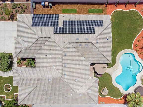 JUST REDUCED BY $15k! This gorgeous 3,103 sf home in gated 7 Oaks/Windermere has 5 bedrooms, 3 baths and separate family, dining and living rooms. There are many high-end amenities, including: solar, salt water pool, spa, 3-car garage, wood flooring in most rooms, a rock fireplace in the family room, speakers in the family room and patio and pocket sliding glass walls which open into the covered patio w/ a fireplace and stamped concrete flooring. The gourmet kitchen has granite counters, ss appliances, an island, 2 ovens and white cabinets. There is a beautiful master suite which has dual vanities, granite counters, a large walk-in closet, a soaking tub and travertine tile on floor. Sale is contingent upon Buyers assuming the balance owing for the purchase of the solar system (approx. $17,000). Sellers have already paid off approx. $20,000 of the purchase price. See attached True-Up Bill ($1,000 last year). The monthly payments are fixed at $180.