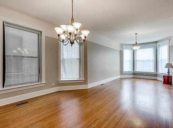 3 bed, 2 full bath duplex down in vintage greystone in East Lakeview. Hardwood floors throughout main level. Unit is updated with stainless steel kitchen appliances. Balcony off kitchen. Two bedrooms upstairs, and primary suite in lower level. Primary suite features updated bath and huge walk-in closet/sitting room with custom built-ins. Laundry room in lower level, right out the back door of the unit. Laundry is free, not coin-op. Great location, convenient for L, buses, and restaurants. 1 assigned parking space included in the rent. No pets.