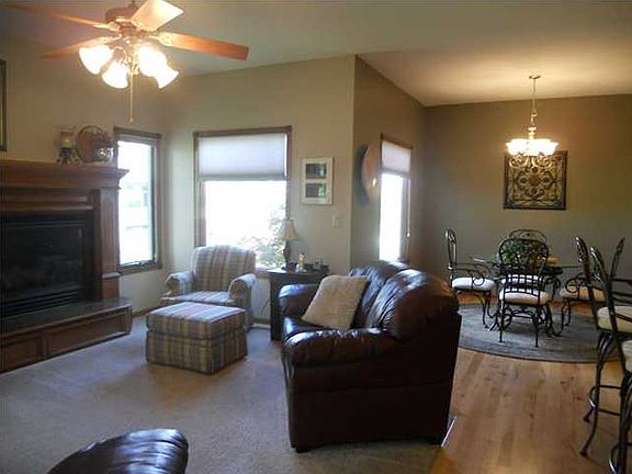 Ranch style with open floor plan. Main floor featuring Hearth room with gas fireplace adjacent to kitchen with hardwood floors, granite counters & convection oven/microwave. Two eating areas,formal or casual, is convenient for all occasions. Additional sq ft of 9.11X9.3 for kitchen dining is not included in the kitchen dimensions. Master bedroom offers good natural lighting & coffer ceilings. The master bath includes 2 vanities, granite counters, ceramic tile & walk in closet. Additional features are good storage, separate laundry, ample windows. The covered deck overlooks nicely landscaped yard with mature trees that provides good privacy, stamped concrete patio, sprinkler system & well. Entertain with ease in this walkout/view out basement with a great wet bar complete with refrigerator, microwave & dishwasher. Relax around the beautiful gas fireplace & built in entertainment center. Even plenty of room for a pool table. 2 bedrooms and bath makes the basement a great 2nd living area. Both basement bedrooms are over sized & one has a walk in closet. Check out the 3c garage which includes lots of cabinets and a great workshop area. Neutral decor' and no smoker's or pets. This house is in move in condition & at the low end of the price range for the neighborhood!!! Located in the Fossil Rim neighborhood & close to swimming pool and clubhouse.