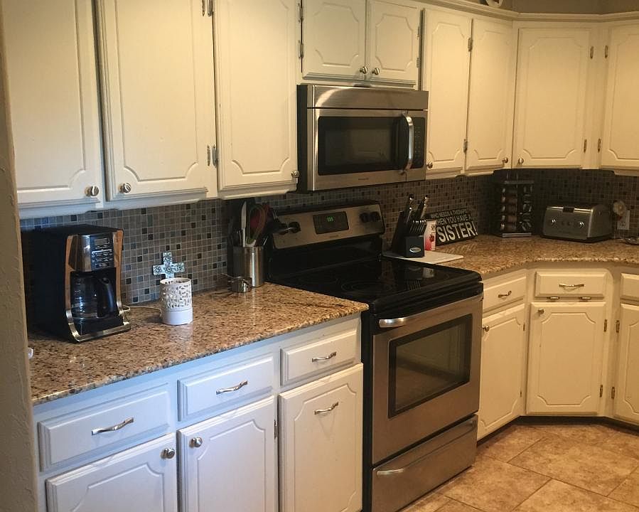 This house has been completely remodeled, feels like new! NEW interior/exterior paint, refinished wood floors throughout, tile, granite in kitchen and bathrooms, kitchen glass tile back splash and stainless steel appliances, light fixtures, new shower tile in both baths, faucets, central heat & air, blown insulation, exterior doors, double pane windows and so much more! This rental includes a stainless steel refrigerator. Great location for a great price! Renter pays for all utilities, lawn care included in rent. Deposit is 1000 plus first months rent. No pets allowed