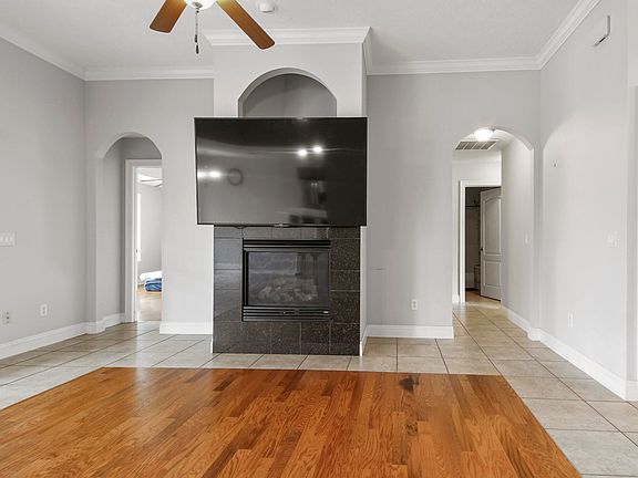 Located in no HOA within minutes of TAFB, shopping, restaurants and more. This open concept split floor plan offers arched hallways, and tile flooring throughout the entryway and common areas. Kitchen features a kitchen bar, stainless steel appliances, quartz countertops, and recessed lighting; overlooking the eat-in dining area and living room. Living room features hardwood flooring, crown molding and fireplace. Right of the entryway sits the secondary bedrooms with hardwood flooring and full guest bathroom. Master bedroom features hardwood flooring, tray ceiling, double vanity, separate accessible tile shower with bench, garden tub, and his/her walk-in closets. Exterior features a screened in back patio with tile flooring, paver salt water pool, and fenced backyard.