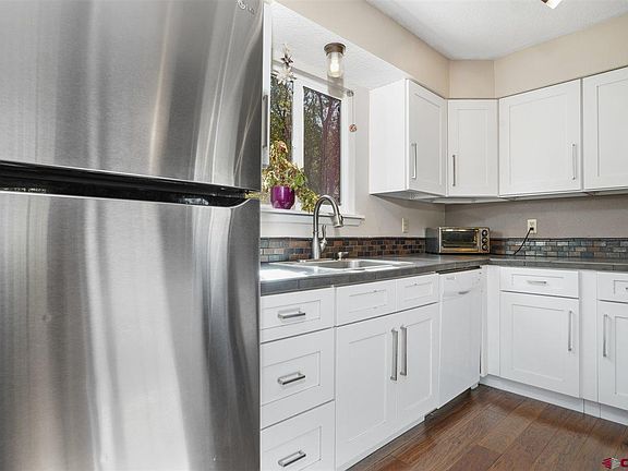Lovely 3 bedroom, 1.5 bathroom, end-unit townhouse with tandem two car garage. Kitchen has tile countertops, stainless refrigerator, stove and hood; a large pantry and access to the back deck to a common area with vegetable garden, sitting & play area surrounded by trees. There are updated wood floors, vinyl windows and nicely painted throughout. The first level has the kitchen, dining and living rooms, pantry and half bath. Upstairs is located the three bedrooms, full bathroom and the laundry area. The master has two closets, lots of windows with a sliding glass door to the front balcony. Located close to the college, downtown, walking trails and steps from numerous restaurants and shops in the Florida Rd & CR 250 corridor. The owners like the open floor plan, the tandem garage for all their toys, privacy of the end-unit location, the convenience of being close to Bread, POP Sushi, Machos, J Bo's, 3 different trail systems within one mile, and the trolley stop is only a block away. This townhome works well for the buyer who is full/part-time, first-time, or investor.