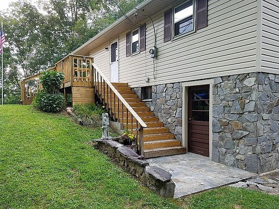 Looking to get away from it all? This home is at a fabulous end of the road location! 2BR/1BA raised ranch over full two-car garage/basement. Nice coverd porch plus open deck. Home is in excellent condition and has a nice, open yard. It is totally private on 9+ acres with big timber and four-wheeler trails throughout. Nice sized stream along one border. Drive is in excellent condition and is partially paved. Lovely mountain views and Southern exposure. New roof 2020.
