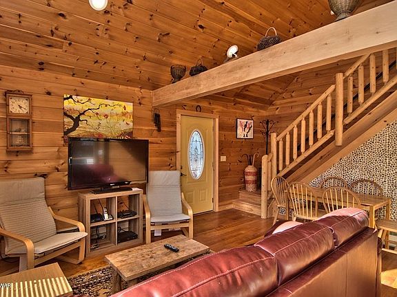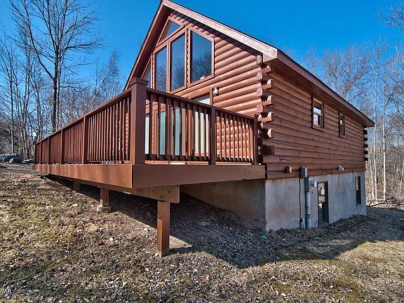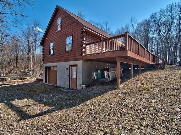 Custom Log Home in an award winning community of The Hideout in Lake Ariel Pennsylvania. This young home has three levels featuring an open concept living/dining/kitchen space with high end finishes and hand scraped maple floors. The upgraded bathroom has a separate jetted tub and rainfall shower. A soaring staircase with log handrails leads to the reading loft and private bedroom, no maintenance pine tongue and groove interior provides the classic cabin feel. The large wrap around deck , perfect for entertaining, overlooks the woods. The home is situated on 1/3 acre adjoining the golf course. Partially finished walk out basement with 1 car garage offers space for recreation, workshop and storage.