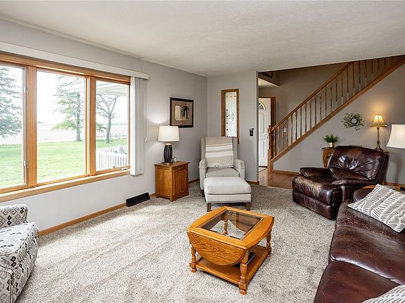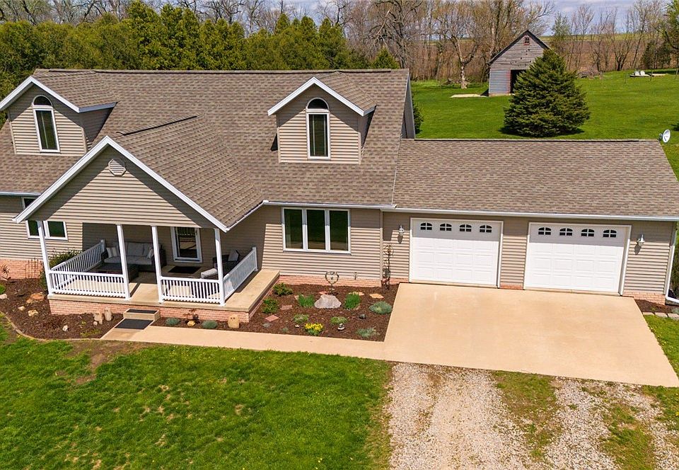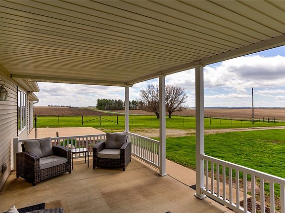 Check out this acreage and enjoy the southern view of the country side from your covered front porch. This acreage features a 2 story home and 3 outbuildings close to town in Grundy County. The house was built in 1999 with over 2000 square feet of living area with 3 bedrooms and 4 bathrooms. Many updates include new siding, shingles, large back deck, sliding back door, front door, new granite counters in kitchen with composite sink and tile floors, hardwood floors from entry through dining area, and living room and primary bedroom carpet. The basement is also partially finished with a family room, full bath, rec/fitness area and workshop with plenty of storage. There a 46x96 Pole barn, 26x46 Machine Shed and a 28x48 converted corn crib. Call the listing agent to schedule your showing today 515-564-9126. All information obtained from seller and public records.