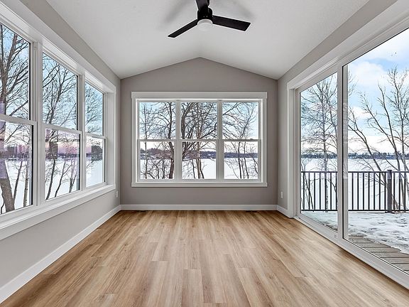 Green Lake Villas - 35 detached townhomes on the shores of Green Lake - 1,800 acres, sand shoreline. This home is "a real home" w/ 4-season porch, generous built ins, full landscape all the way to the lakeshore, 59' of sand shoreline. Main floor living, w/1,709 SF, finished bsmt (2,874 total FSF) and on a quiet loop street that serves only 35 homes in this community. HOA does usual things @ $265/month. Nice trees, gentle slope, your own private lakeshore, install your own dock, & moor up to 3 boats. 3 blocks walk to downtown to bars, brewery, shops, hardware, post office. Lindstrom is a bike or car ride away with more shops. Chisago Lakes area has abundant trails. Coffee on the dock every morning, fishing in the evening. Move in about November!