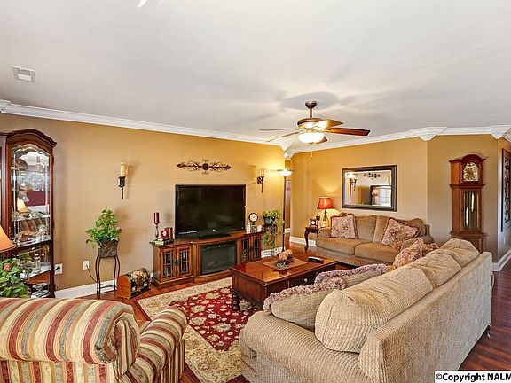 - LIVING ROOM DESC: Crown Mold, Smooth Ceiling, Laminate Floor, Ceiling Fan
