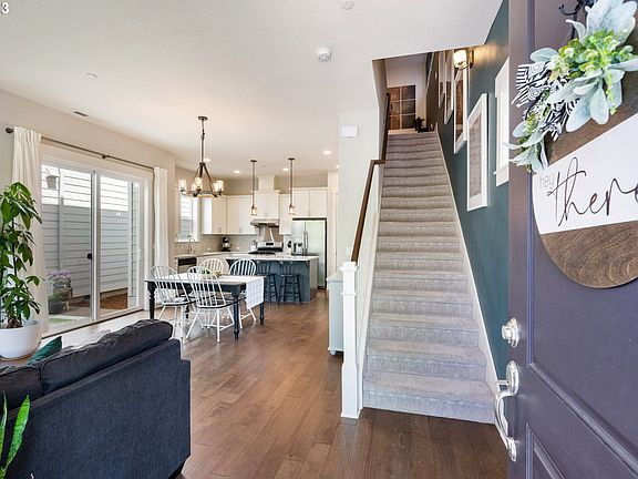 Welcome to Villebois, where convenience meets smart living. This two-story traditional home, across from Edelweiss Park is located on a private cul-de-sac and one of the few homes in Villebois with driveway parking for 2 cars in addition to the attached 2-car garage. With 3 bedrooms and 2.5 bathrooms, this home offers a perfect blend of style, functionality, and modern conveniences for any everyone.The open and spacious downstairs area presents a great-room concept; seamlessly connecting the kitchen, dining area, and living room with a custom mudroom connecting the kitchen to the garage. The kitchen showcases beautiful quartz countertops, island, and custom cabinets throughout. Upstairs, the owner's suite overlooking the park is complemented by an en-suite bathroom with soaking tub and large walk-in closet. With modern features, thoughtfully designed layout, and sought-after location across from parks and 1 block from the piazza, this home has the perfect blend of quality, convenience and comfort. Don't miss the opportunity to make this house yours!