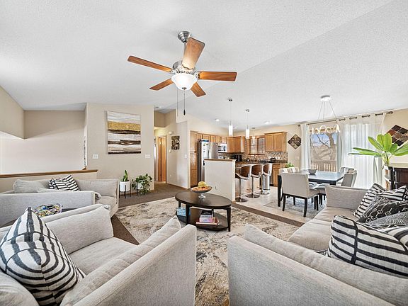 Well appointed and inviting 4 bedroom, 3 bathroom home full of updates! Main floor living space offers vaulted ceilings and an open floor plan w/updated modern light fixtures, newer carpet, appliances and granite counters along with a large deck off the dining area. You'll be impressed to see that 3 of the 4 bedrooms offer walk-in closets for ample storage. The basement offers daylight windows, a corner gas fireplace, newer vinyl plank flooring and a beautiful walk in tiled shower. Large dedicated laundry area separate from utility room. Newer updates throughout the home include granite counters, a tiled backsplash, modern light fixtures, carpet upstairs, vinyl plank downstairs, roof, A/C, water heater, garage door, reverse osmosis water filtrations system to kitchen sink and refrigerator, sump pump and exterior storage shed.