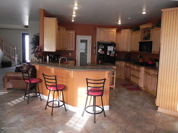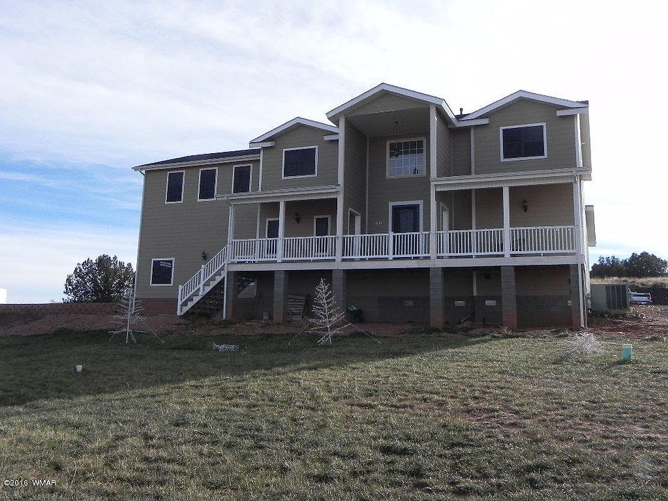 Gorgeous large family home sits high on a hill with east facing views located in Taylor, AZ. Home has an attached two car garage, two story, 4 bedroom/2.5 bath, office, covered front and rear decks, open kitchen, large pantry, storage in room off garage. Master and Formal living downstairs, HUGE family room and three guest rooms upstairs.
