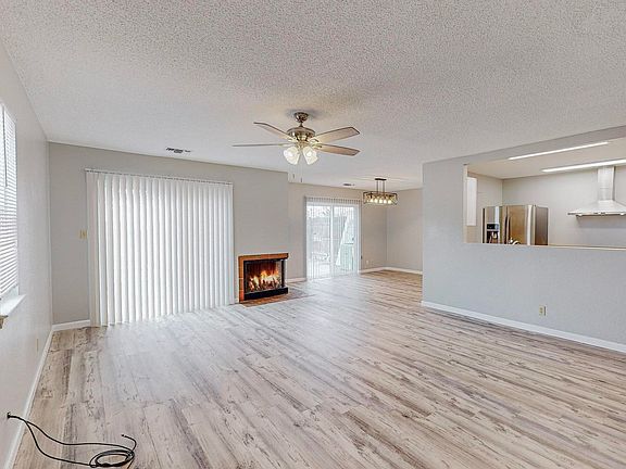 Welcome home to this adorable townhouse nestled in desirable Rio Rancho! Close to schools, shopping and restaurants featuring spacious bedrooms with one on the main level. This 4 bedroom, 2.5 bath home has undergone updates that include vinyl LifeProof flooring, new sliding glass doors, new kitchen cabinets and butcher block countertops, sink, vent hood installed March 2024. The upstairs features generous size bedrooms with jack and jill bathroom with new tub surround installed February 2024. The primary bedroom suite features a ceiling fan, two closets, large vanity area and shower. Large corner lot has backyard access and storage shed.