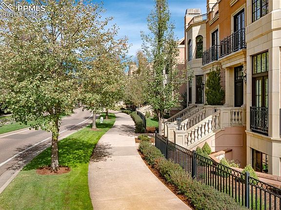Tasteful elegance is what this beautiful custom Brownstone is all about. Located directly across from the prestigious Broadmoor Hotel. First rate finishes to include crown moldings, authentic limestone fireplaces, cherry floors, beautiful and unique open staircase, and custom millwork with Alder wood built-in bookcases. Master suite with private laundry. Private elevator and two balconies. Kitchen with custom cabinets, granite countertops, Wolf and Sub-zero stainless appliances. Gallery lighting under stairway to display your artwork. This property includes option to purchase a Broadmoor Golf Club membership.