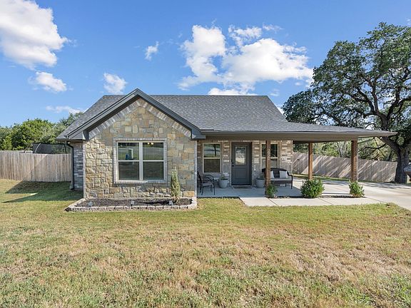Located on two lots in the Comanche Cove Subdivision, this well-kept 2-bedroom, 2-bath home offers functional open-concept layout with thoughtful features throughout. Situated on a quiet cul-de-sac, the property provides a peaceful setting with convenient access to community amenities and Lake Granbury. Inside, the home features a seamless flow between the living, dining, and kitchen areas - ideal for entertaining or everyday living. The kitchen is equipped with granite countertops, Energy Star appliances, and ample cabinet space. The bedrooms are comfortably sized with easy access to a full bath. Step outside to a huge back yard and patio. This is a great opportunity to own a well-maintained home in one of Granbury's most popular lake communities.