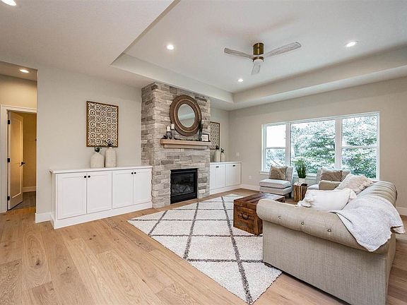 This stunning JW Home Builders home is designed to impress with fantastic views from every room! Perfectly situated on a quiet street with mature pine trees offering privacy yet convienient to I-380, major employers, schools, shopping and more. Superior craftsmanship and quality shine throughout this beautifully appointed home. Enjoy the open great room with full-stone fireplace w/custom built-ins and white oak mantle, tray ceiling and ultra durable white oak Woodura flooring. The chef's kitchen offers fully custom cabinetry to the ceiling with appliance garage, rift white oak island & hood, smart slide-in gas range, French door refrigerator, quartz countertops and a corner pantry. The owner's suite includes a striking barn door into the bath, dual vanities, custom tile shower w/ledge, handheld showerhead & glass doors. You will love the efficiency of having the closet connected to the laundry room! The sunny walkout lower level is complete with an oversized rec room and custom wet bar with 2 beverage coolers, island w/open storage & stunning tile work. The bonus home office is tucked away for privacy and perfect for kids of all ages. Top it off with irrigation, a covered deck w/composite decking, Low-e Gerkin windows and a whole-house humidifier. Call today for a private showing!