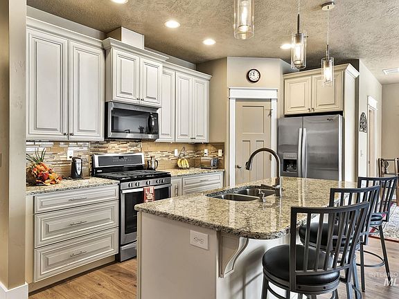 This beautiful, well cared for home in the quiet and charming Lava Springs Subdivision could be your dream home! It is a 3 bed, 2 bath home with stylish upgrades throughout. Preparing meals is just plain fun in the open kitchen w elegant soft close cabinets, granite countertops, all stainless steel appliances & a handy pantry. Other memorable features are the very 1 360spacious great room with large wonderful windows that bathe your environment with an abundance of natural light. You will enjoy the lovely master suite and other very special details like a a coffered ceiling, covered patio, and a large garage that could be a 3 car or a 2 car with a shop. The subdivision offers a quality life style with a large swimming pool, many trails and 3 points of access to the Stoddard Pathway Bike and Walking Trail and it's own Charter school.