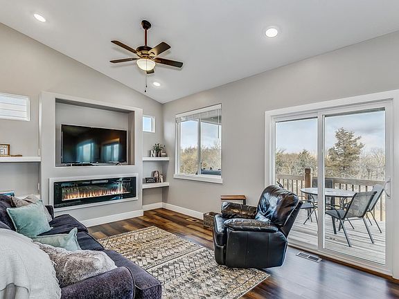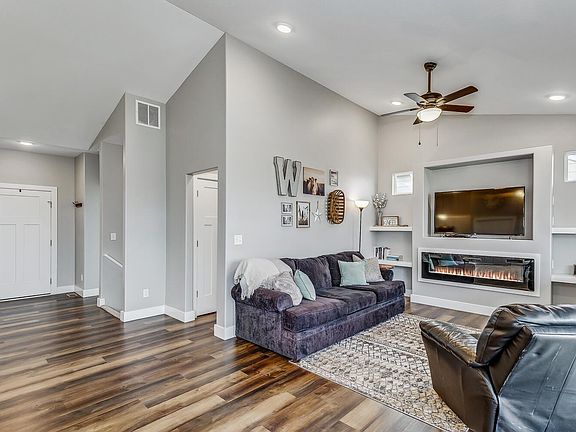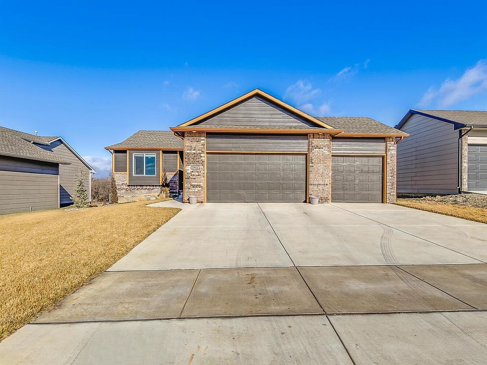 Do you want a new home without the wait time to have it finished or having to worry about putting a yard and landscaping in? This home was built in 2021 and is barely lived in with no pets or kids in home. This is your chance to own a wonderful home that backs to the coveted tree line in the neighborhood, Valley Center school district and well kept throughout. You will notice the upgrades in this home from the time you drive up and see the 8 ft tall garage doors, faux copper guttering to add that wow factor to the home, buried gutters to run rain water away from the home, large covered deck, fantastic upgraded landscaping, newly placed yard and sprinkler system, and so much more rarely seen in this price range. As you enter this home you will see over 1441 sq ft just on the main level and a fully finished basement below to total over 2600 sq ft of finished space when many new builds only have 1300 sq ft on the main level for this price! This is a 4 bedroom, 3 bath home with 2 large bedrooms being on the main level and 2 more in the basement. There is even an additional office space that is amazing. The home has a large entry, open kitchen, pantry, main level laundry, large dining space and living room space for entertaining on the main level that leads right out to the covered deck. In the basement is a large rec room finished to enjoy those cozy evenings entertaining with friends and family. The home was finished with granite countertops in kitchen and baths, 2 electric fireplaces, LVP flooring and so much more. This is truly one to see in your search as it shows very well and you would never believe it has even been lived in. Come see this one today.