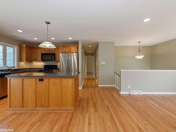 Wonderfully updated, move in ready home, on almost an acre! Great open concept design which makes entertaining guests with ease. Access to deck from kitchen that overlooks the mature trees, professionally landscaped yard, and large shed. You will surely appreciate the expanded Master suite with private master bath and walk in custom closet. Newly refinished oak floors, trim, new carpet throughout, & freshly painted neutral tones adorn both levels. Lower level has 2 additional large bedrooms, full bath, and cozy family room boasting a gas fireplace which is perfect for snuggling in front of the fire on cold nights. This home is truly special and is a must-see in a great location with direct access to downtown McHenry! Minutes away from Fox River & Riverwalk. Award winning schools.