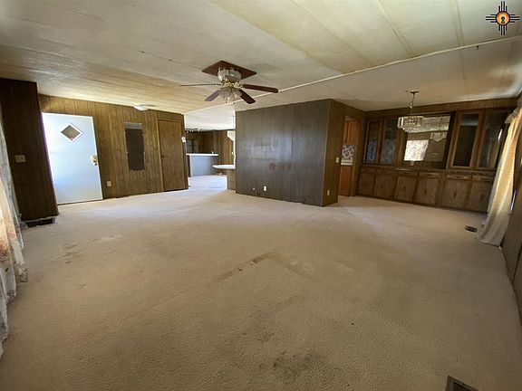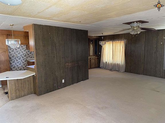 Double wide manufactured home on just under an acre of land in North Lovington. Nice metal fence with double gates around front part of property. Wooden walkways and deck on front of home with mature trees. Separate metal roof built over the manufactured home with large metal carport. Spacious living area with open floor plan. Wet bar with sink next to dining area. Several separate storage buildings. Priced to sell by motivated seller!