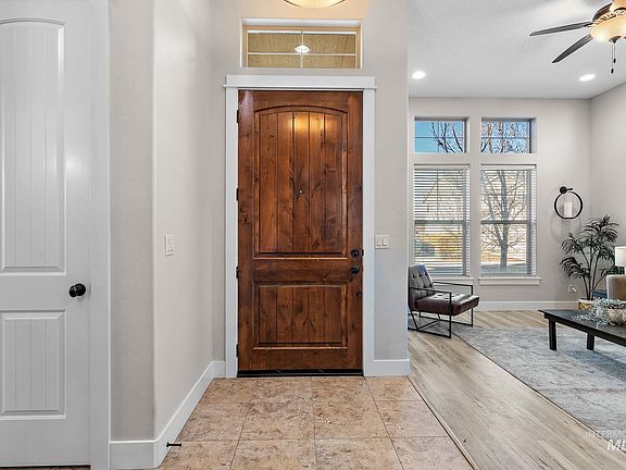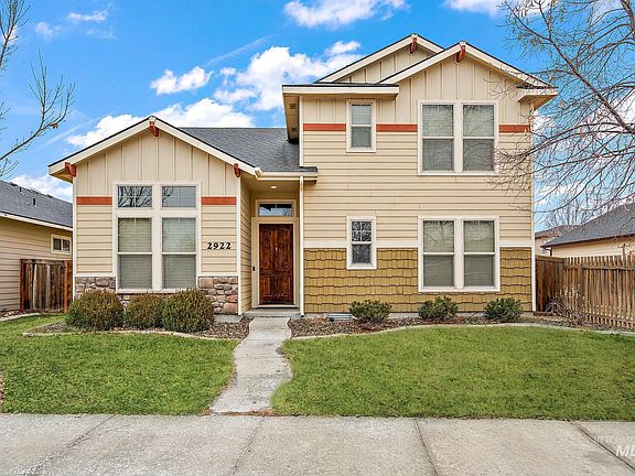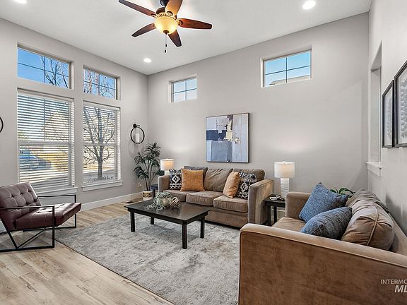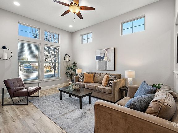 Simplify your life with this low maintenance home. Minimal yard work, great location near stores and restaurants. No need to go downtown. Situated in easy access to Eagle Road and interstate but secluded and away from noisy traffic. Very neutral pallet, with front sitting area, bar area and eating space in kitchen. Patio and outdoor area off of kitchen for entertaining and bar ba q. Main level master with walk in tile shower, dual vanities and ample closet space. Fantastic work desk/space near kitchen but tucked away in a quiet zone. Second fl has 2 great sized bedrooms, expansive bonus room for theater or game nights. Do not miss the oversized garage for storage, toys or maybe a tiny car.