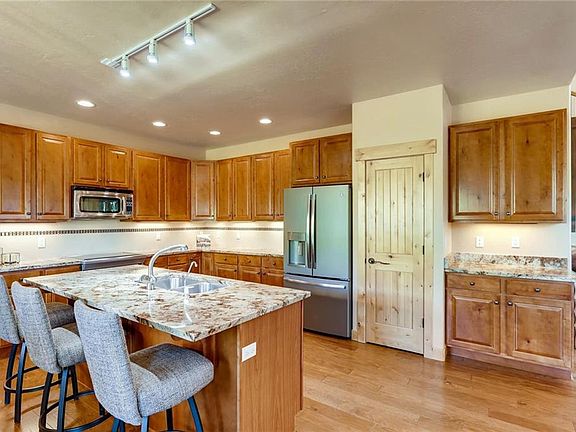 Impeccably maintained home with privacy and outstanding golf course and mountain views. Adjacent to golf course. You can see golfers but they can't see you. Large Spacious open living area with a two story rock fireplace. Gourmet kitchen with high end induction range/oven and stainless appliances and granite counters. Three large bedrooms plus a den. Wake up in the master suite with the sun catching the mountain tops. This is a terrific primary residence and also a great ski/golf home.