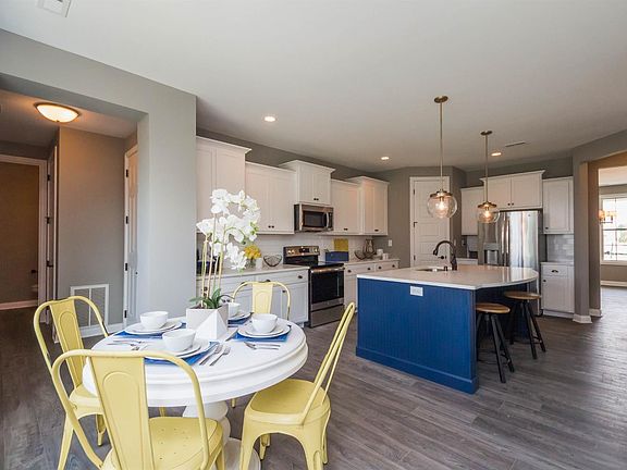 The Serenity Plan is the largest and newest plan offered by Anderson Communities. This elegant, two story home combines traditional and formal styling with great livability. The first floor has a formal L/R (or office) and D/R plus a family room with a fireplace that has impressive custom trim detail. The kitchen is incredible! White castled cabinets with a enormous contrasting navy island. Custom tile backsplash, stainless appliances, white quartz counter tops with a Carrara marble look. The entire first floor features luxury plank floors. The upstairs features a stunning Master suite with double tray ceiling - Large Master bath that includes a tiled shower separate tub and his & her vanities. 4 large additional bedrooms and 2 full baths upstairs. Additional features include a 3 car tandem garage & large patio. Act now and receive 1 year membership to the community pool, 24 fitness center, tanning and clubhouse!