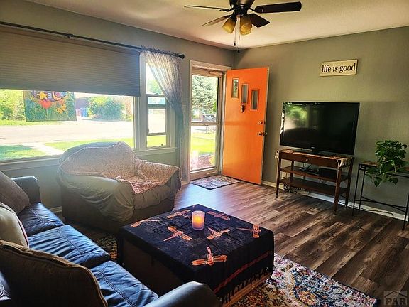Adorable home with 2 bedrooms, 1 bath plus an oversized 1 car detached garage and a carport. Kitchen has stainless steel appliances, new cabinets, and new countertops will be installed soon. In addition, there's new flooring and paint throughout the interior, as well as a new walk-in shower and hot water heater! Both evaporative coolers will stay as well as the washer and dryer. Nice landscaping with an automatic sprinkler system for the front lawn. The bonus room (13.5 x 6.5) between the kitchen/dining area is not included in the assessor's square footage.
