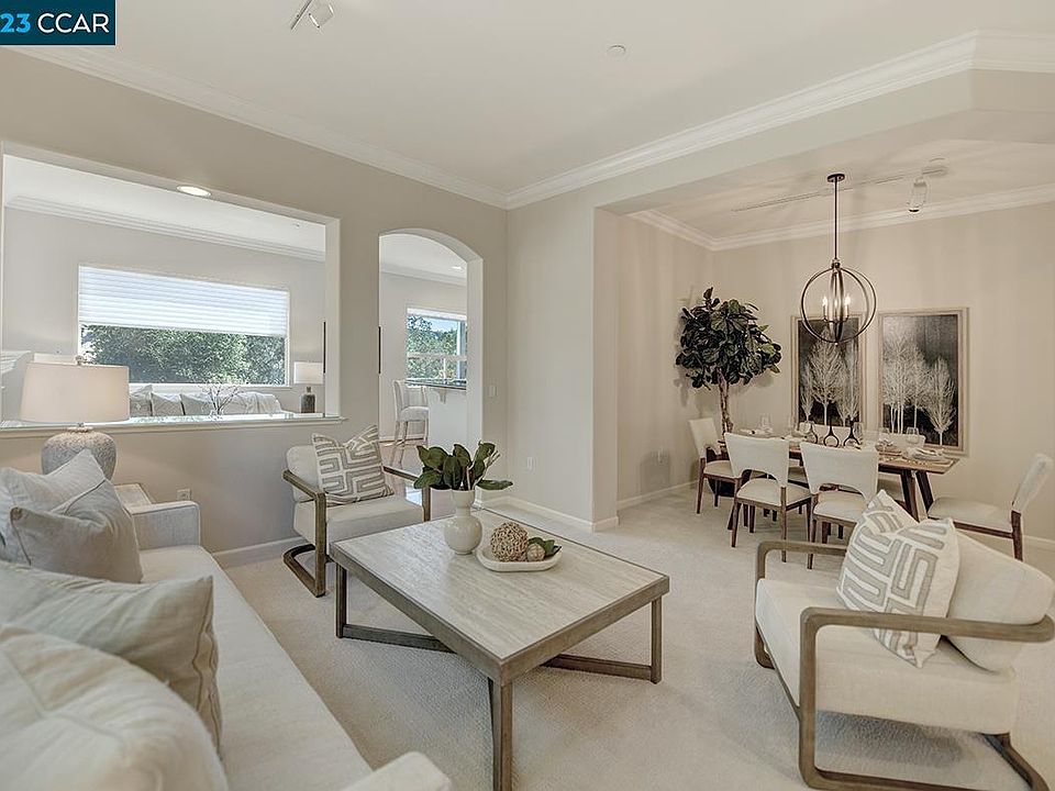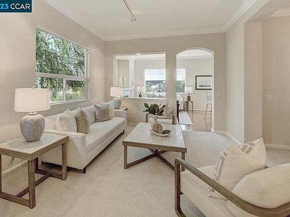 Experience elegance with the Level-in Condo on beautiful Eagle Ridge in Rossmoor. Bask in the breathtaking view of the Walnut Creek ridge and Delta from the comfort of your home. Revel in the spaciousness of high ceilings and be enchanted by custom crown molding that adds a touch of regal charm. Stay comfortable year-round with a new Heating Ventilation Air Conditioning System. The large primary suite with a walk-in closet is a true sanctuary. Enjoy the freshness of new carpet and paint, while hardwood flooring in the family and kitchen area exudes warmth. As part of the vibrant gated community, you'll enjoy an array of amenities, including golf, swimming, tennis, Pickle ball, bocci ball, and table tennis. Delve into your passions with workshops for art, sewing, lapidary ... engage in friendly games of bridge, mahjong, canasta ... in the game room. Over 200 clubs and organizations. Several clubhouses offer great meeting room space for gatherings, dinners, and dances. Embrace this exciting chapter of life and celebrate the years ahead in style at Rossmoor.