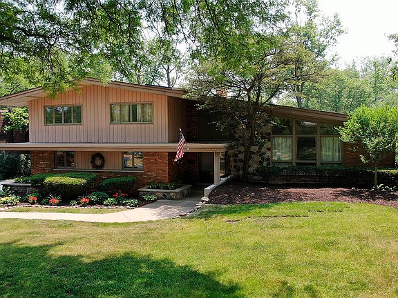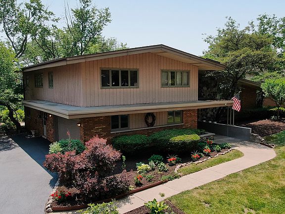 Here's the Story . . . of a lovely house! Such a cool vibe in this sprawling retro home. Great curb appeal is just the start - with beautiful landscaping and great front lines. A charming covered front patio leads you into the slate foyer and up to the main level of this quad home. The living room has amazing vaulted ceilings, a brick and wood accent wall and a wall of floor to ceiling windows and connects to the large dining room. The kitchen has SO much space, counters cabinets, a breakfast room and an amazing indoor grill! Sliding doors lead to the back patio. Upstairs are 4 large bedrooms with multiple closets all with built-in shoe ledge, including a huge primary suite with balcony overlooking the back yard. The walk-out lower level has a family room with an incredible fireplace wall and another set of patio doors to the lower patio. A fifth bedroom or perfect office, a full bath and large laundry room. The basement is large and dry and ready for finishing if you wanted, or used for a ton of storage. 2 car heated attached garage too. But as nice as the house is the YARD is stunning. An oasis of multiple patios and mature planting. If that 60s vibe speaks to you, and you need lots of space, this house is super groovy!