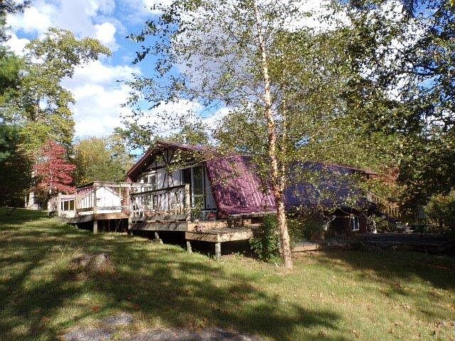 38 year old interesting property 1.3 miles from Flatwoods at junction of Hensley Hollow and 207. Very private setting amid the woods with many ways to enjoy the outdoors. You are greeted by a two car garage and carport. The residence is an owner-built, mansard roof home that features patio, large porch, and wood decking for outdoor enjoyment. The ground floor features a large family room, bedroom, full bath and small kitchenette with laundry. The upper level features a modern kitchen with adjacent eating area next to glass to enjoy the "goings on" outside. Two bedrooms and bath round out this floor. Many neat features await. Let's look today! ASK FOR THE ALREADY COMPLETED HOME INSPECTION.
