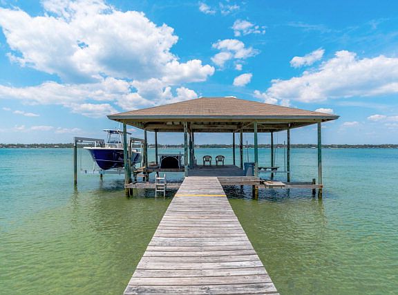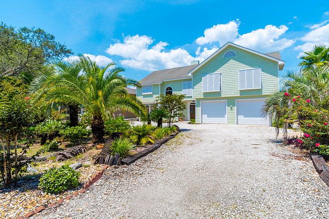 LOCATION LOCATION near the Pass into the Gulf of Mexico and Ono Bridge. Panoramic views of Bayou St. John. Spectacular sunsets. High ceilings in great room; house has much charm! Granite counter tops, Viking stainless appliances, large laundry room off kitchen area. Two water heaters: gas instant and electric. Double garage plus carport. Beautiful antique French front doors. Boathouse with private sandy beach. Home featured on HGTV!
