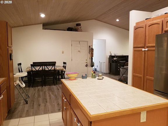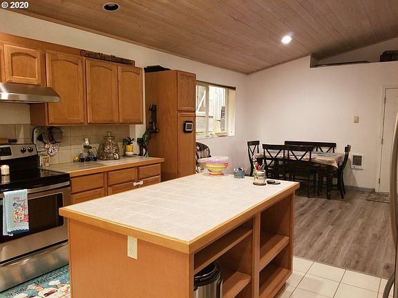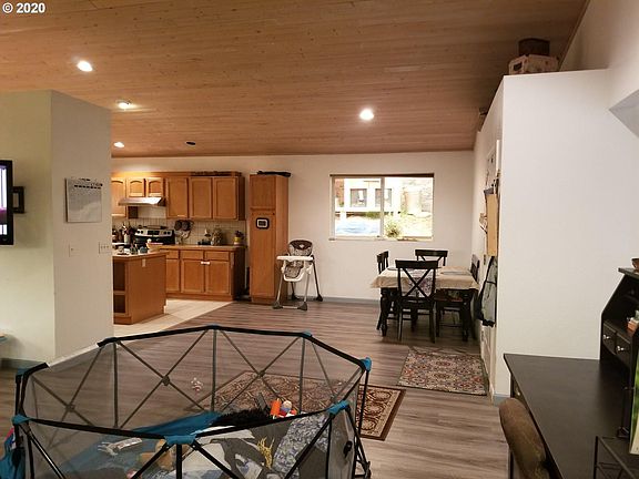 A peak of the ocean view from this 3BR/2BA home.Big windows allow more light & the vaulted ceilings make this home appear even larger than it is.Open concept living, dining,& kitchen area for great flow.Living room has a wood burning fireplace; Beautiful new flooring, kitchen has an eat at bar, island, tile countertops and a dishwasher; Master Suite has it's own deck. Oversized garage for your cars and storage needs.