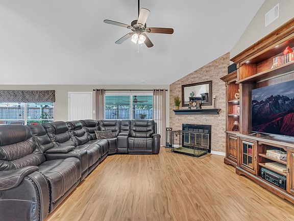 Look no more! This upgraded & well maintained home is a show stopper! From the fresh white exterior paint to the stone pavers, you'll instantly feel welcomed in! Once entering the foyer, you'll see the brand new laminate wood floors that lead into the large Livingroom w/ wood burning fireplace! Around the corner, is the completely remodeled kitchen! Quality custom cabinetry w/ pull out drawers, quartz counter tops, farmhouse sink & you even have your own coffee station! Not to mention whole home water softener w/ reverse osmosis that will be staying with the home! Cozy primary suite with adjoining bathroom features double vanities, walk-in tiled shower and good sized closet space. Updated secondary bath! Garage has been converted to third bedroom, laundry and storage room! Expansive back porch invites you out to enjoy your morning coffee & plenty of room for many backyard gatherings! Well rated schools and close proximity to all shopping and restaurants nearby!