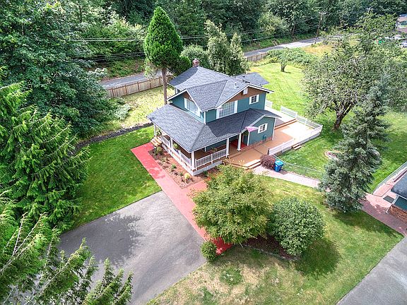 This is Country Living in Style! This classic 1914 farmhouse has been remodeled from top to bottom with attention to detail throughout. Enter from the deep wrap around porch to custom tile with mosaic inlay. Gorgeous Brazilian hand scraped hardwood floors flow through the living room, dining room and kitchen. Wide white mill work and large windows create an open feel. Delight in the Chef’s Dream kitchen, remodeled with slab granite counters, raised breakfast bar, rolling barn door pantry, antique white cabinets and custom copper farm sink. Upstairs you will enjoy the spacious Master Suite with vaulted ceilings, walk-through closet with custom shelving and luxurious master bath with his & hers vanities and walk-in, spa style shower. Two upstairs guest rooms are nicely sized and share a gorgeous guest bath with marble floors & half wall, skylight and deep claw foot tub. Outside enjoy a giant deck, manicured grounds, a detached 4 car garage and space to roam! Lovely gated entry, split rail fencing and the nostalgic Red Barn create a welcome feel. This property may be subdivided into 5 lots. New furnace, heat pump water tank, and roof create added value. This home enjoys easy access to HWY 18, Costco, major retail, dining and business hubs.
