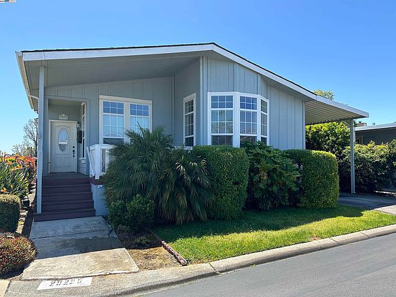 Centrally located in a highly sought-after Senior community in the Heart of the East Bay! This 2006 manufactured home is nestled in Hayward's New England Village Mobile Home Park, offering many amenities, close proximity to 880 Freeway, along with the comfort and the convenience of being close to restaurants, shopping, Golf Clubs, and much more! The kitchen has one island for plenty of storage and entertaining. The home features a rear primary bedroom with with a soaking tub and large walk in closets. There's a covered front deck and long covered driveway that can accommodate 3 cars. This lovely home will have new exterior paint within the next couple weeks. Make New England Village your new home and enjoy the pool this summer!