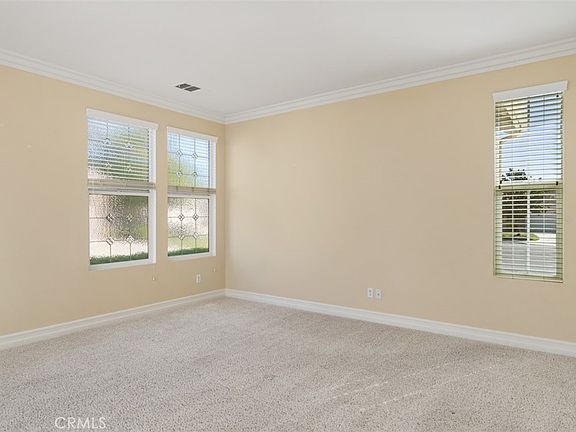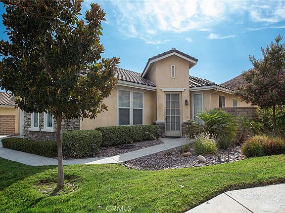 Absolutely stunning highly upgraded and customized home at a premier "Over 55" gate guarded golf resort. Ideally located on a small private cul-de-sac near the highest point at the extraordinary Oasis Community. Great curb appeal. The list of upgrades is endless and includes custom crown and baseboard moldings and the builder's top-rounded door package throughout. The huge living/great room with leaded privacy glass windows is also usable as a bonus/game/ music room or whatever fits your lifestyle. Formal dining room. The kitchen is a chief's dream with tile floors, granite counters and full backsplashes, island with stainless steel sink, built-in gas cooktop, double ovens, LG inverter refrigerator, breakfast bar, gorgeous cabinets galore, desk, two walk-in pantries , solar tube lights and adjacent big dinette. The kitchen opens to the family room that features wood type floors, coffered ceiling, tile fireplace, built-in entertainment center, ceiling fan and slider to the fabulous view back covered patio and yard. Truly elegant master suite with wood type floors, coffered ceiling, slider to the view patio, two walk-in closets, one with solar tube light, and mirrored doors. The master bath is beyond description with tile floors, immense dual sink granite vanity, beautiful custom tiled shower, spa tub, privacy commode and solar tube light. Guest bedroom #1 has wood type floors, ceiling fan and mirrored closet doors. Guest bedroom #2 has wood type floors and ceiling fan and was used as an office with a separate room A/C. The bath between the guest bedrooms is a literal masterpiece with granite vanity and an incredible floor-to-ceiling steam shower. Laundry room with tile floors, oversized LG washer and dryer and walls of cabinets plus folding counters. The back yard with covered patio and lush gardens has lovely mountain views. 2-car finished garage plus separate golf cart garage. HOA dues include front yard maintenance and trash pick-up. No Mello-Roos taxes. Exceptional community amenities that begin with a 22,0000 sq. ft. clubhouse with a huge auditorium, media/card room, state-of-the art fitness center, multi-purpose rooms, library, computer center and billiard parlor. BBQ/Party area. Tropical pool and spa. 2 lighted tennis courts and 4 pickleball courts and much more. Social and recreational clubs to meet everyone's diverse interests. Just an hour's drive to L.A. & Orange Counties, downtown San Diego & Idyllwild. Near Temecula, Wine Country & Casinos.