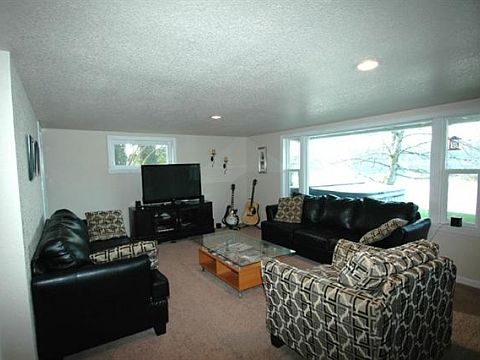 Amazing sunsets await you in this beautiful home w/many upgrades and unique features. 100' of low/no bank waterfront w/prvt dock and boat launch. Enjoy 3 BR, 2 fully updated baths on the main level. Kitchen has upgraded granite tile countertops and plenty of cabinet space. Lower level has 2 extra finished rooms, 2 baths and 2nd kitchen w/new Shaker cabinets and granite slab counters, and new floor tile and carpets throughout. Spectacular views from almost every room. This house is truly special.