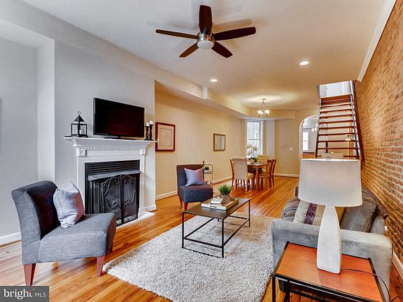 Gorgeous, fully updated Patterson Park home with private parking pad and recently renovated full basement! Spacious living room with exposed brick, gas fireplace and Palladium window welcomes you home. Large dining room leads to open concept kitchen with granite countertops, brick backsplash and stainless steel appliances. Luxurious master suite with high ceilings, huge closet, and attached spa bath with double vanity and soaking tub! Full, fully finished basement has been freshly refinished and has new carpet and paint. Additonal bed and full bath in basement. Original pine floors, marble steps, and stained glass transom give this home incredible Baltimore charm! New siding on rear of home. Oversized parking pad! Convenient to shopping & dining! Steps to Patterson Park!