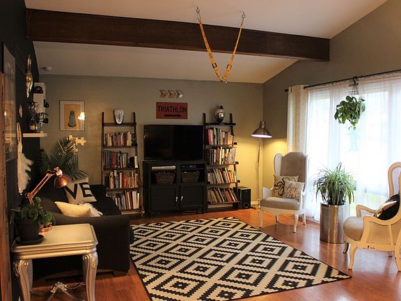 Adorable 4 bedroom, 2 1/2 bathroom home conveniently located on the west side of Manhattan. This home has many great characteristics and updates that make it stand out from others. The whole main floor has vaulted ceilings with exposed wood beams throughout. The living room lets in lots of light from the big front windows and is open to the dining area. The cute kitchen has an island with an eating bar, a built-in pantry, and a sliding door that leads out to the sun room. The large master bedroom has its own private 1/2 bathroom. The other 2 bedrooms on the main floor are a great size. Downstairs in the full finished basement there is a large living room that has a wood burning stove to warm up by in the winter. The fourth conforming bedroom connects the laundry room and bathroom, which would make it a great second option for a master bedroom. There is a fifth non-conforming bedroom and extra storage area. The big backyard is fully fenced and perfect to enjoy nice days outside.