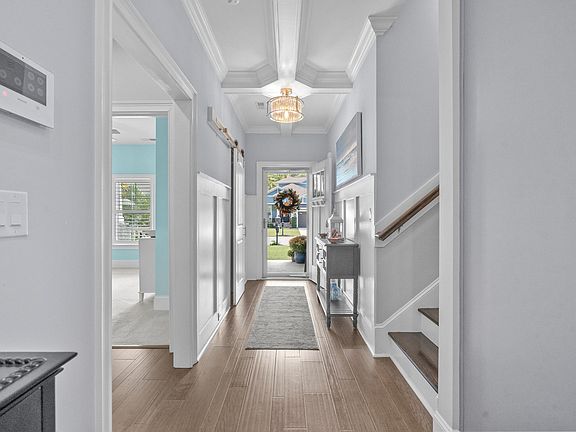 Located on a quiet cul-de-sac of Waterbridge, this beautiful custom home is ready for you to move right in! Great open concept living room/kitchen has gorgeous vaulted beam ceiling, cozy gas fireplace, custom deluxe trim and plantation shutters. Gourmet Kitchen has oversized eat-in island, quartz countertops, incredible 42'' wood cabinets w/wine rack & soft close doors/drawers. Stainless steel dishwasher, gas cooktop, micro/oven combo, vented range hood, built-in cabinet pantry, and laundry room off kitchen. Wonderful extra space in the screened-in lanai with tile floor and EZ Breeze windows! Spacious 1st floor Master Suite has custom lighted tray ceiling, large walk-in closet, a spa-style bath w/curbless tile shower, oversized shower head & freestanding soaking tub. Large guest bedrooms 2 & 3 on 1st floor. Extra space with 4th guest bedroom/office/flex space & 3rd bath upstairs on 2nd floor. The professionally landscaped lot with fenced in backyard and separate water meter just for the irrigation system, backs up to Protected Nature Preserve. Keep pests away with the Taexx Pest system installed in home and full home security system. HVAC system with 3 zone Nest thermostats and large walk in storage space in the attic, accessible from 4th bedroom. Waterbridge has award-winning, resort-style amenities with the largest residential swimming pool in South Carolina which includes swimming lanes, waterfall island, jetted spa, and a swim-up bar and remodeled clubhouse. Also enjoy the outdoors with newly surfaced tennis and pickleball courts, volleyball, basketball under the lights as well as boat launch on Palmetto Lake, and 24-hour fitness center.