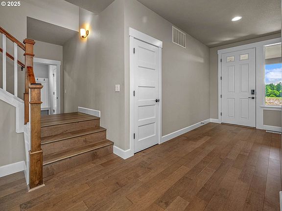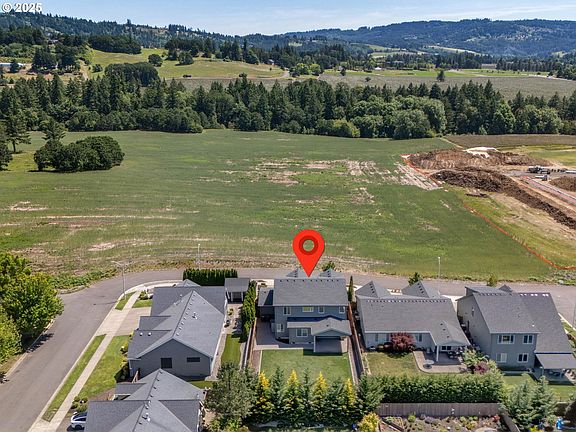 This delightful home is located on a peaceful street with vista views of the surrounding farmland and vineyards. All of the benefits of newer construction with high ceilings, engineered wood floors, a full bathroom, plus 2 offices or 1 office and a formal dining room on the main floor. The spacious kitchen has an eating bar, pantry, built-in oven with microwave and induction cooktop and is also plumbed for a gas cooktop. Just off the great room is a covered patio overlooking the pristine, level backyard that is fully fenced and includes a tool shed and an extra paver patio area. The upper level offers 4 bedrooms, plus a loft which is ideal as flex space for home schooling, playroom, additional office area or a quiet reading space. The full-width 3-car garage has a car charger and a tankless water heater. You cannot beat the location that provides a beautiful setting, quality neighborhood, great access to the charming Newberg downtown, in addition to first-class wineries and an easy commute to Hillsboro, Beaverton, Tigard, and McMinnville.