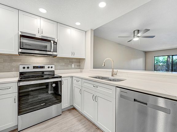 REMODELED TO THE STUDS! 2/2 Condo located in the Heart of Melbourne! Featuring beautiful Quartz Countertops, Soft Close Cabinetry, Stainless Steel Appliances, Handsfree Faucet, Vinyl Plank Flooring throughout, Gorgeous tile Showers, NEW A/C, NEW Hot Water Heater. Large/Private Screened Patio with locked storage room. Pet Friendly community! Low HOA! Roof 2yrs old. Remodeled Modern Club House with Gym AND Pool! Playground! On-site Property Management. WALK to Bowlero Bowling Alley, Restaurants, Shopping and Entertainment! Beach only 15min! Close to Melbourne Regional Medical Center and only 10 min to the airport!
