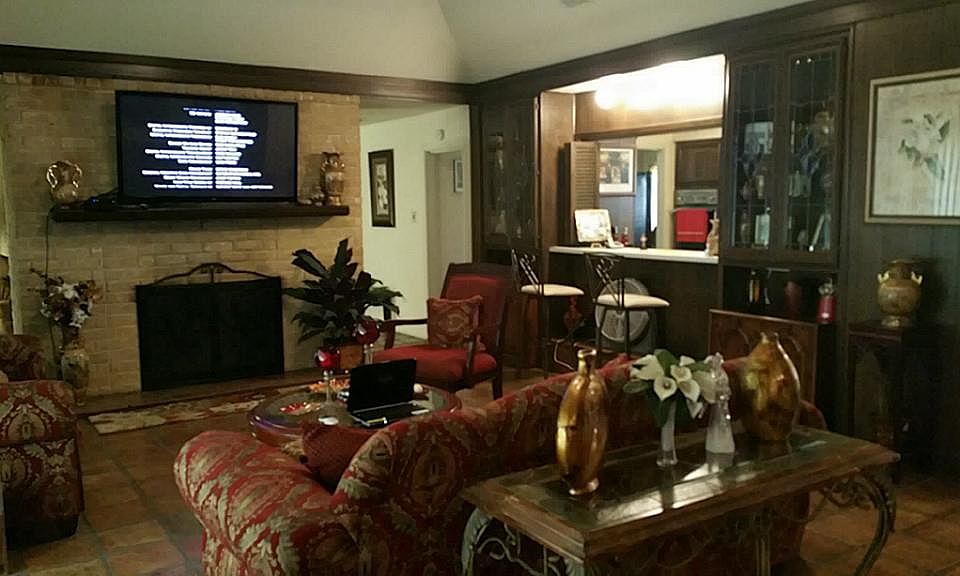 SOLD AS-IS. Well maintained home! Windows & More! Space & more space! Huge, one-story home with split master plan. Master Bedroom with sitting area & atrium. Plus, three additional spacious bedrooms. French doors & windows overlooking golf course. Featuring huge living area with fireplace. Comfort/Study behind fireplace. Atrium/private get-a-way. Utility room with half bath. Storage room plus Oversized 2-car garage with work area & cabinets. Decked Backyard. A must see!