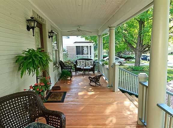 This "Vintage Century" home has a Victorian flair and has been lovingly restored with attention to every detail by the present owner. Once known as "The Carson Home", it is loaded with charm, original features and wonderful ambience. It features high ceilings, refinished hardwoods floors with original decorative inlays, gorgeous dark oak woodwork, open oak staircase, stained glass windows and a brick fireplace. The covered front porch has new natural wood, oil rubbed floors. Upstairs one of the bedrooms has been extended to include a sitting area, a small kitchen and a remodeled 3/4 bath. There is a 2 1/2 car garage, an extra large lot with lovely landscaping highlighted by brick wall ways, garden bed, patio and many perennials. A true showplace!