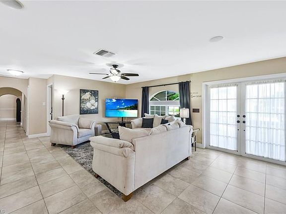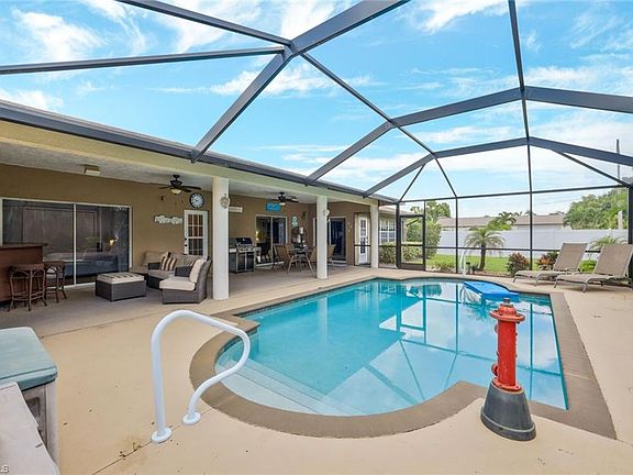 Welcome to your new home at 2923 SE 15th Ave, Cape Coral, FL 33904! This spacious and inviting 5 bedroom, 3.5 bathroom home offers 3,281 sq ft of comfortable living space and 6241 total sq ft on a large 1/2 acre corner lot, giving you plenty of room to grow and entertain. As you step inside, you’ll immediately notice the modern updates, including beautiful tile flooring, stylish 5-inch baseboards, and contemporary ceiling fans and light fixtures. The open and airy living room and family room provide perfect spaces for relaxing and spending time with loved ones. The heart of the home is the fantastic island kitchen, complete with shaker cabinets, lots of counter space for meal preparation, newer appliances, 2 custom pantries with wine racks, a chic glass tile backsplash, and eye-catching pendant lighting. Whether you’re cooking for the family or hosting friends, this kitchen is sure to impress. Your private master bedroom is a true retreat, featuring sliding doors that lead directly to the pool deck and a luxurious bathroom with a soaking tub, separate shower, and a spacious walk-in closet. Two of the guest bedrooms share a convenient Jack and Jill bathroom that also serves as a pool bath. The 5th guest bedroom, located off the living room with French doors, can be used as a flex room, den, office, or formal dining room. There’s also a handy half bath with a linen closet that can be accessed from the garage. Outdoor living, you’ll love the newly caged pool with a unique custom fire hydrant pool fountain and plenty of lounging space. The large covered outdoor living area and expansive exterior paver deck are perfect for BBQs, parties, or just soaking up the Florida sun. The 4+ car garage is a dream for any hobbyist, equipped with 2 new hurricane-rated insulated garage doors, 220v power for your EV Charger, a workbench with cabinets, a shower, and a utility sink. Other practical updates include a new roof 2023, a new A/C in 2019, a new pool cage in 2023, a new privacy fence, and new hot water heaters installed in 2019 and 2023. Plus, you’ll have peace of mind knowing this home is in an X flood zone. Located in a highly desirable area of Cape Coral. Close to the Midpoint Bridge and Cape Coral Bridge so it's easy on and off the Cape. This is truly a unique and functional home with the spacious garages, huge corner lot and circle driveway. Don’t miss out on this amazing opportunity to own this beautiful home in Cape Coral.